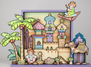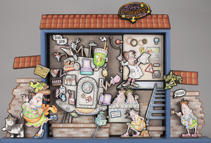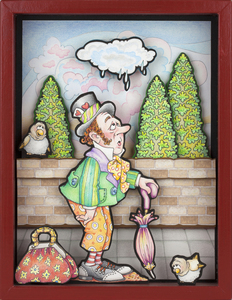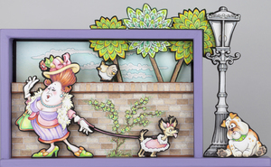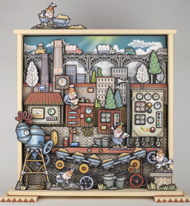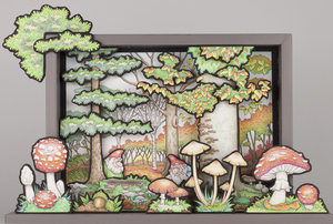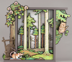 2025Houten dioramabakje met illustraties op MDF, uitgezaagd in 3D.