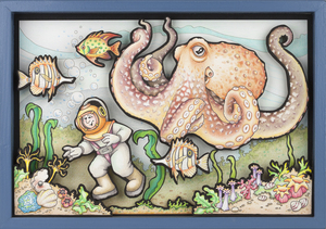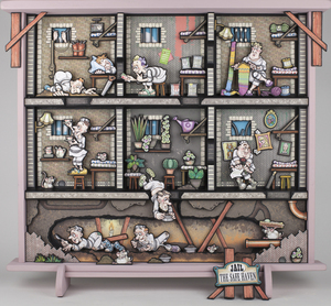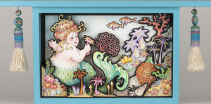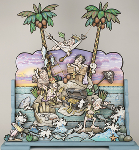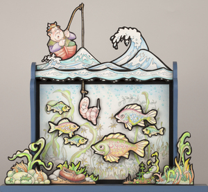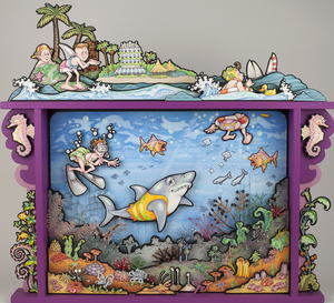 2022Houten dioramabakje met illustraties op MDF, uitgezaagd in 3D.