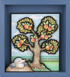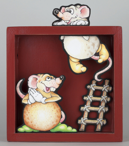 2022Houten dioramabakje met illustraties op MDF, uitgezaagd in 3D, inclusief rijm.